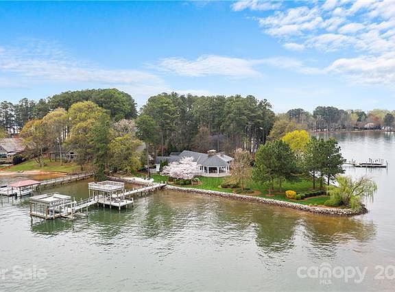 Exquisite .8ac Point Lot w/over 465' of WF and views of Sunrises & Sunsets! Lot is .95ac if out of contour land is counted per survey. One 6' wide Pier w/ TWO Dock areas (one stationary w/ 1000sqft main level & 300sqft upper deck AND one floating w/438sqft upper deck w/ wrap around built-in seating). Boat Lift in add'l area. Sandy beach adj to Lg Flagstone Patio. Screened Porch w/ Adj spa off Master. Outdoor/Enclosed Bar. Extensively Renov 2900sf Ranch home 2008-9 w/Loft (Over 4700sf under roof). Covered Front/Back Porches. Chef Kitchen boasts a French Aga Range w/custom rolled SS hood, Add'l Bake Zone with Wolfe Gas Burners, Subzero Refrig, BlueStar Indoor Grill, Miele Coffee maker & speed oven, Wine Refrig. Kitchen overlooks Vaulted Great Room w/Stone Fireplace & WViews. 2 Master Suites (one w/Vermont Casting Stove & Heated Flooring in Bath). Walnut paneled Library/Office w/wetbar/refrig/ice maker. Whole-house music/Security.Generac.Oversized garage. Shed. Add'l Parking for RV/Boat.