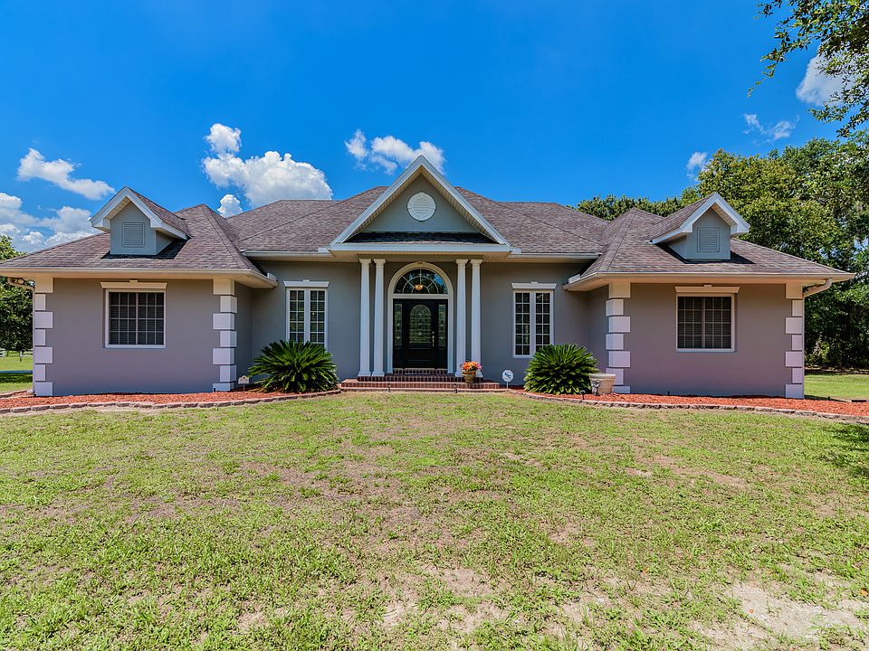 Bring your toys, RV and horses; this gorgeous property is located just outside of Fishhawk Ranch. Enter through the electric gate to this lovely estate. The property is level and adorned with beautiful sprawling oaks. There is an RV station with water and electric, dog run, shed and of course the 36 x 36 barn that can be used for horses or whatever you choose, equipped with water and electric plus a room upstairs. The back half of the property can be pasture or used for RV fun. The front of the property has been used for weddings among the oak trees on the manicured lawn. The current owner added the gorgeous 36x15 heated pool, spa, pergola, water and fire features. This is a great space for entertaining. As you enter this custom open concept built home with the high ceiling adorned with crown molding, real hardwood, and a wood fireplace with french doors on either side, you will feel the quality. The kitchen is equipped with double ovens, stainless steel appliances, center island, breakfast bar and granite counters. There is a mother in law suite situated apart from the other bedrooms for privacy. The home was designed with plenty of storage, featuring walk in closets, numerous cabinets in the laundry room and a huge pantry closet, not to mention the garage storage. Don't miss this home.
