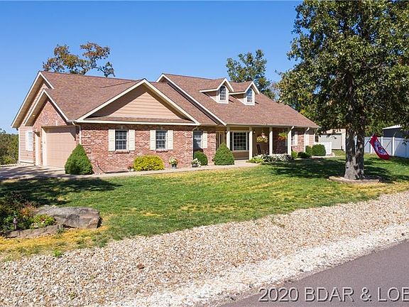 This beautiful custom built home is located on a large corner lot with beautiful views of the lake. You will fall in love with the nice covered front porch to take in the view of the 3 mile marker of the Gravois Arm of Lake of the Ozarks. The home is almost maintenance free with brick and hardie board siding. You will have lake access a short distance from the home, boat ramp and community dock for swimming. This home features a large Master Suite with a beautiful walk-in shower, his/her closets, 2 guests bedrooms and guest bathroom. The kitchen has a hidden pantry, granite counters, nice dining area. There is an enclosed sunroom to enjoy reading or watching TV. The cozy gas fireplace in the living room will take the chill off on a cool night. There is a nice patio area with an outside storage attached to the house, there is another storage shed on the property and the garage is an oversized 2 car garage. Don't let this one pass you by.