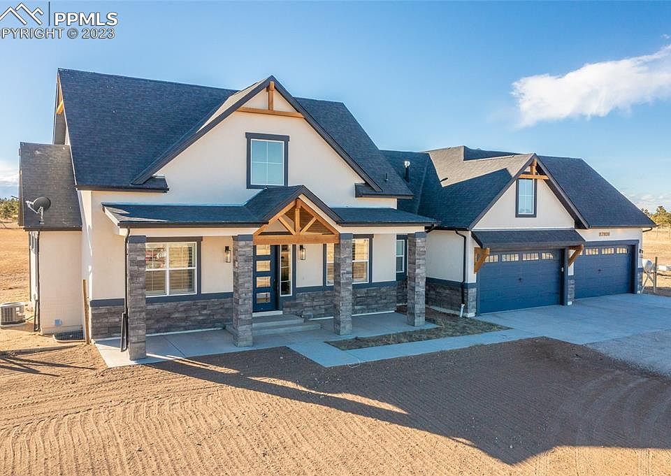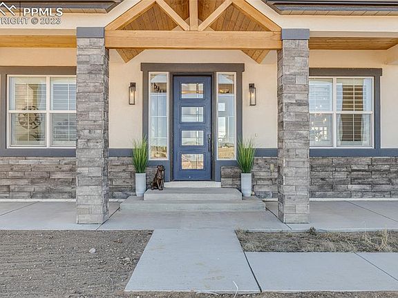 Custom Home on 5 acres of horse property! Open floor plan with Gorgeous great room and Gourmet kitchen with Gas cooktop with pot filler, double ovens, drawer microwave in island, Refrigerator, walk in pantry. Custom Tile and Granite counter tops throughout home in kitchen, wet bar and all baths. Gorgeous Great room with fireplace looking out to Pikes Peak and tongue and grove ceiling with custom wood beams. Master Retreat has a very large walk in closet, Spa shower with freestanding tub. Guest en suite on main level with walk in closet and full bath. Fantastic designer Light fixtures. 2 laundry rooms 1 on main level and 1 on lower level. 2 high efficiency furnaces. 2 water heaters. Water softener and filtration system. The basement is perfect for any occasion whether it be a good game of pool, playing your favorite card game or watching Top Gun Maverick in the theater with surround sound. The property is fenced and ready to go for all your pets including horses. Enjoy the peacefulness of the county all while being 20 minutes to Colorado Springs, 15 minutes to Falcon and Just over an hour to Denver. Home is just over 2 years old. You must see it for yourself. It has everything you would need in a custom home.