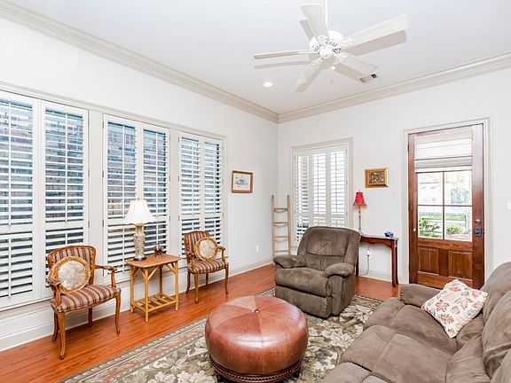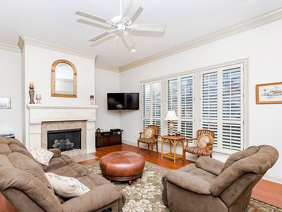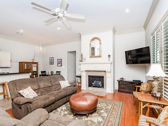 This beautiful home is located in Willowbrook Subdivision a small community with a pond and walking trail. It features a great open floor plan, mudroom, and 11' ceilings which gives this home a spacious feel. The gorgeous gas log fireplace is the focal point of the living room. The kitchen has custom cabinetry with slab granite counters and the island has bar seating. The primary bedroom is great for king sized furnishings. The primary bath has two vanities, a large soaking tub and a separate shower and water closet. Here, you'll find a large walk in closet which conveniently passes through to the laundry room. Upgrades include custom plantation shutters on all windows, crown molding in the living areas and primary bedroom, wide planked wood laminate flooring in the primary bedroom and a gas line on the patio for outdoor grilling! Washer, dryer, and refrigerator remain. This low maintenance garden home is move in ready and ready for a new owner to make it home!