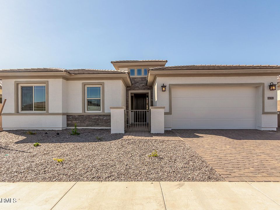 MLS#6682567 Meet the Bradshaw: a single-story layout boasting 2,616 sq. ft., 3 beds, 2.5 baths, 4-car tandem garage, dining, study, and more. Its inviting design features an open kitchen, spacious great room, and casual dining area. Enjoy privacy with the primary suite separated from secondary bedrooms, equipped with dual sinks, a shower/tub combo, and a walk-in closet. Design options include: white cabinets, quartz countertops, gourmet kitchen with stain steel appliances including refrigerator, and washer/dryer. Structural options include: RV gate, additional 4' gate, and garage service door.