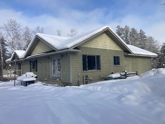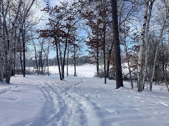 This 4 bedroom 3 bath home on just over 9 acres sits on a small, quiet natural environment lake just two miles out of Pine River. The finished lower level has its own entrance, living room, kitchen, master bedroom with large walk in closet, one finished bathroom, roughed in for additional bathroom, framed in additional bedroom, and large storage room. Would make an excellent mother-in-law suite, daycare, or rental income. Main level has custom cabinets, two walk-in closets, laundry room, master bedroom balcony, built-in entertainment center with bookshelves in living room, and large west facing windows with a view of the lake. Flooring is a mix of carpet, wood, and tile. French doors in the dining room open to a patio with ample space for entertaining. Two car attached garage is insulated and sheet rocked with a large shelving unit. The yard features several flowering trees and a mix of perennial plants.