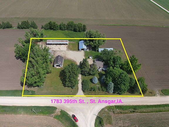 Acreage located approximately one mile north of Mitchell, Iowa. The property is to be surveyed but will be approximately 2.6 acres. Outside the house has vinyl siding, wood deck and there are usable outbuildings for storage or livestock. Inside the house some of the main features include hardwood floors, three bedrooms, formal dining room, den, enclosed front porch, 1 1/2 bathrooms and a newer forced air furnace.