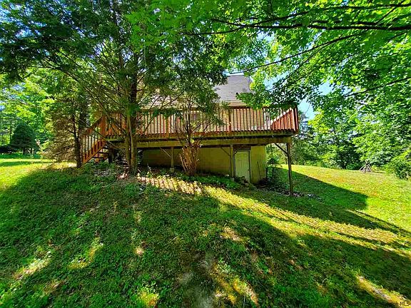 Calling all nature-enthusiasts! Peaceful living on almost 7 acres! Everything on one level with potential to expand into the unfinished attic - or leave for ample storage. Main floor displays a comfortable living room that leads to the kitchen and dining area with access to the large deck. You will find a large basement with high ceilings and walk-out access to the serene property where you will find acres of beautiful trees and a nearby creek. This country living is minutes from the hamlet of Kerhonkson and a short drive to the Minnewaska State Park Preserve. Last picture shows the Rail Trail entrance that is just down the road from the property.