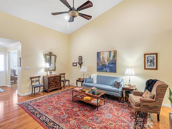Easy living!! This immaculate ranch villa is updated & move in ready! Enjoy the private setting as it is tucked on a short, quiet street & backs to trees. There's plenty of parking w/ 2 car garage & extra spaces across the street. Inside you'll love the beautiful wood floors & vaulted ceilings! Kitchen is updated w/ white cabinets, granite counters, tiled backsplash, accent lighting, breakfast bar, pantry & opens nicely to a spacious breakfast rm which steps out to a newer composite deck. Main flr laundry is just steps away & has plenty of storage w/ cabinets & coat closet. Main flr owner's suite is generously sized w/ two closets & an updated ensuite bath w/ dual vanities, tiled flrs & low entry shower w/ seamless glass drs. There's also a 2nd bedrm, hall bath & office space on the main level. Walk out lower level has a partially finished rec rm w/ egress window & sliding door to patio, roughed in bath, sump pit/pump. Architectural shingle roof installed May 2023 plus New AC in 2021.