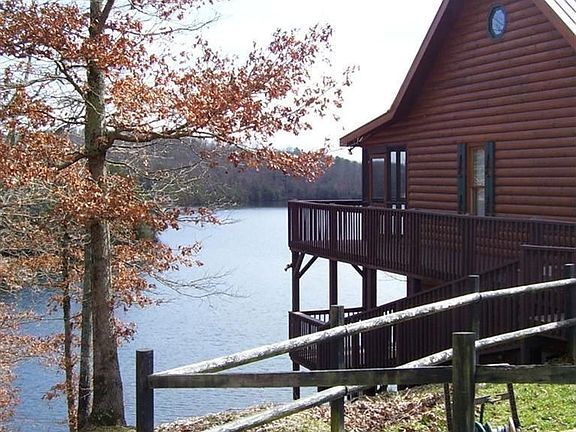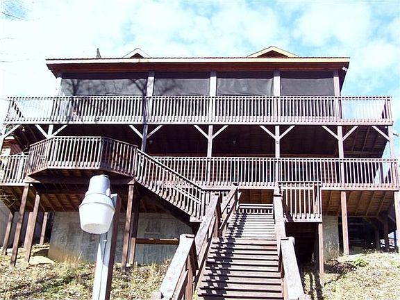 Lake Front Home On Woods Creek With Dock. 2005 Log Siding Cabin With 2090 SF. 3 Bedrooms & 3 Baths. Master on Main,Whirlpool,Fireplace, Vaulted Ceiling,Huge Screened in Porch. 2 Car Garage.Kitchen is Open To Great Room, Making A Perfect Year Round Home or Get-a-Way.Three Bedrooms & 3 Baths. Master is On Main Level. Main Level Bath Has Double Whirlpool and Walk-In Shower. Nice Loft Area Overlooking Great Room and Bedroom & Bath on This Level. Lower Level of Home Is Walk-Out Basement With Family Room, Bedroom And Bath with Claw Foot Tub. Private Dock And 2 Car Detached Garage. Circle Drive And on 1/2 Acre Lot. Huge Front Porch And Decks All Around Cabin. Nice Steps With Handrailings to Private Dock. This Home Has So Much Character and Detail. A Definite Must See!