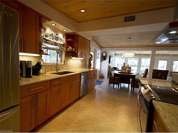 4% Commission to Buyer's Agent. A professional interior designer owns this custom turnkey 2/3 gulf access immaculate pool home in the wonderful neighborhood of Brookside. With a superb location only a couple miles from Downtown and the beach, Brookside is a classic boating community teeming with beautiful Florida wildlife and trees. This mid-century modern designer home has been thoroughly remodeled with new electric and plumbing (5 years) AC (3 years), metal roof (10 years) top of the line appliances and 36' Azek Dock with additional floating dock. Other luxurious upgrades include custom enormous heated L-shaped pool and cage, exotic granite countertops, marble bathrooms, outside lighting, landscaping, automated sprinklers, circular driveway, outdoor kitchen and shower and so much more. Across the street from the new luxury redevelopment triangle, this hot neighborhood is likely to appreciate in value. This beautiful home shows even better than the photos and is a must see for your pickiest Buyers. Listing Agent is related to Sellers.