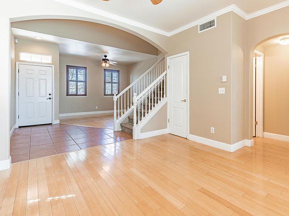 Open House this Sunday 2-5 PM. This home is the crown jewel of the gated European Quarter. The 4 bedroom 2 1/2 bath has the details offered in larger homes but on a low maintenance lot. It features an open floor plan, designer window treatments, two-tone paint and crown moulding giving this home an expensive feel. There are fans in all rooms. The master suite features a large master bath with spa tub, separate shower, dual sinks, and large walk-in closet. The laundry room is conveniently located upstairs with all of the bedrooms. The resort-like back yard has a sparkling built-in pool and spa along with a covered patio overlooking the water feature. Just down the street is a park area. This home has it all!