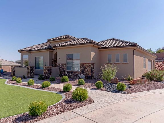 Beautiful custom home with great views of Pine Valley Mountains. It comes with lots of upgrades: Granite countertops, cherry wood cabinets, custom gas fireplace, large walk-in pantry, and a large covered patio. Located on a quiet cul-de-sac in a great neighborhood on a .34 acre lot.