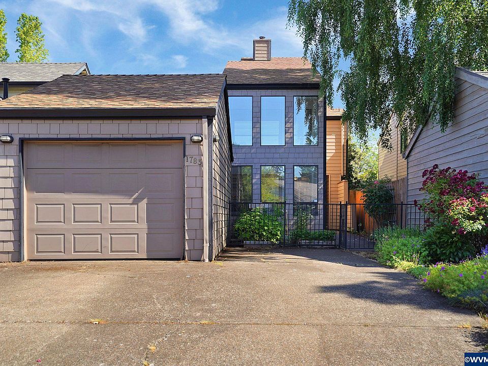 Prime location! Fun and funky two-story home in Corvallis, near OSU, shopping, and bus line. The highlight is the stunning atrium-style room with an abundance of windows, filling the space with natural light. Enjoy the perfect balance of convenience and tranquility in this well-appointed home. Newer SS kitchen appliances, ductless heat pump for heat/cool, with washer/dryer included. Raised garden beds with drip irrigation, fenced courtyard, including ample off-street parking. Schedule your visit today!