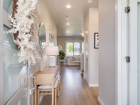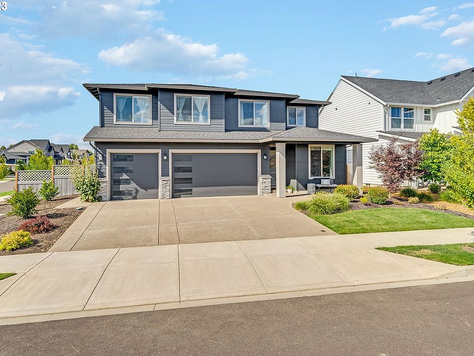 Wonderful two story home on corner lot with all of the right finishes! Main floor is light and bright with wood floors, white walls and open concept living! 4th bedroom and/or office with half bath at the front of the home allows for great flexibility. The living room has a cozy fireplace with tile surround and wood mantle and is open to the dining and kitchen with views to the great backyard. The kitchen packs a punch with quartz counters, full subway tile backsplash, eating island, white cabinets with soft close, gas range, built-in microwave and pantry. Upstairs is a large bonus room with room to spread out, two nicely sized bedrooms next to a shared bathroom with tile floor and tub/shower combo. The primary suite is a relaxing retreat with designer details; tres ceilings, sconces on either side of the bed, walk in closet with custom closet install of your dreams! Bathroom suite has double vanity, soft close cabinets, tile floor and shower surround and separate water closet. 3 car garage provides a spot for everything! Outside has an extended patio with covered outdoor living space, large corner back lot, blueberries, hydrangeas, raised garden beds and lots of room to play! Great neighborhood location that is close to parks, walking/biking paths, schools and an easy drive to downtown McMinnville. Wonderful place to call home!