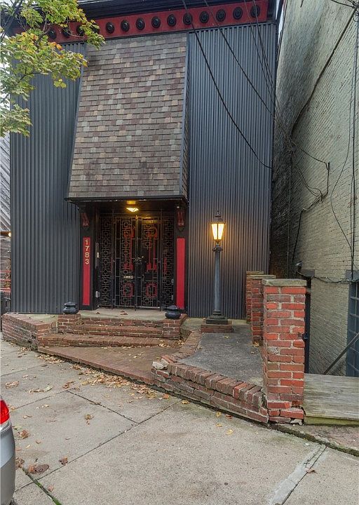 Perched on the hill overlooking North Side’s Mexican War Streets, 1783 Perrysville Ave. is like a steel fortress, with metal siding and hidden steel doors, securing the home from the elements. Magnificent city views can be enjoyed from the 3 rear balconies in this private hillside setting. Inside, huge picture windows frame the city skyline and a spiral staircase, believed to have been taken from a private Boeing 747 airplane, connects the living spaces. The home features multiple stained glass windows featuring historic figures such as Alexander Hamilton. Wired for cat5e internet, an intercom system and surround sound in the living room. Recent improvements include a new sewer line and the removal of many trees in the backyard to provide more usable space for enjoying the outdoors. This unique home is the ultimate entertainer’s home!