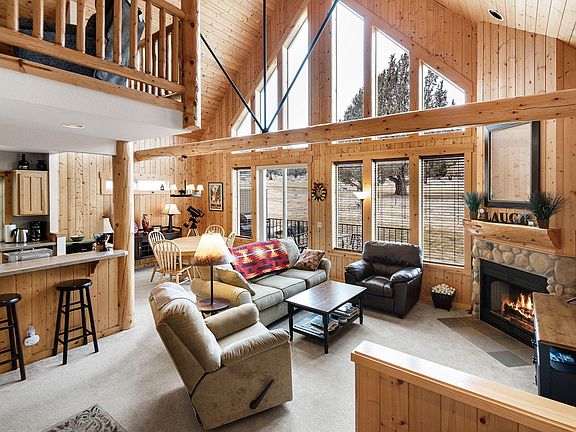 Fabulous Golf Course location! This home is totally furnished & turn key with great room open floor plan. Featuring 3 bedrooms and 2 baths loft area, new trex decking, new furnace, heat pump, water heater, storm door, pantry, slate stone floors. Storage shed is extra large for Kayaks etc. Parking has enough room for 4 cars too. Enjoy all Eagle Crest amenities. Hiking and biking trails, three golf courses, putting course, 3 sport centers and Pickle ball, and Tennis.