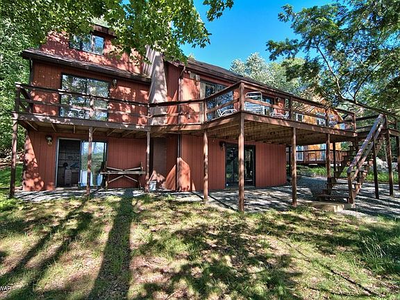 Awesome LAKEFRONT home on a level lakefront lot on Roamingwood Lake, a powerboating lake in a four season resort community. Three finished levels, two car garage, and lakeside deck. Cathedral ceilings, floor to ceiling stone fireplace, master bedroom with full bathroom and access to the rear deck, huge loft, finished walk out lower level with family room and wetbar, new flooring in the lower level. Located on a quiet street. This home faces west so you can enjoy the sun all day! The community features, three lakes, two pools a kiddie pool, two beaches, tennis courts, golf course, ski hill, indoor sports complex with fitness center, clubhouse and pub, miniature golf, and much more!