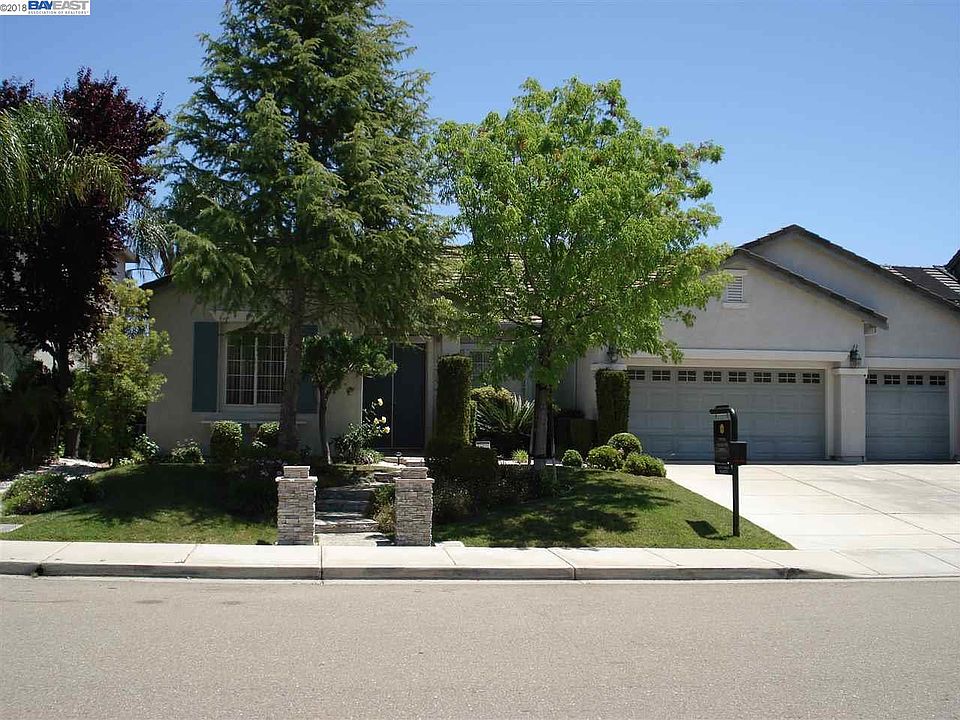 Beautiful contemporary with 2,880 square feet of spacious living on one level. This nicely appointed home has 5 bedrooms, 3 baths, walk-in closets, modern light fixtures, recessed cans, ceiling fans, formal living/dining room, fresh paint, neutral colored carpets and tile flooring. Open layout family room/kitchen combo, lovely granite counters, tile back splash, black GE appliances, breakfast bar, pendant lighting, separate eat in area, and fireplace is perfect for relaxing and entertaining. The private master suite has a tray ceiling, cozy fireplace, large master bath with jetted tub, plenty of counter space and separate shower. Lush mature landscaping, with automatic sprinklers in front, fruit trees, low maintenance landscaping in back and shed for extra storage. Located near schools, shopping, and access to Highway 4. Must see!