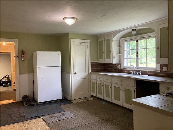 This English Tudor style house has lots of room to spread out with 2000 plus square feet. Bring your tool box to fix the plumbing and make this shine again. This four bedroom house with one bedroom on 1st floor may be just right for you and 1st floor bathroom. Second floor bath (also needs work) to accommodate the bedrooms on 2nd floor If you like entertaining the large dining room is open to the large living room, wood burning fireplace for a cozy winter night, The kitchen is good sized also with room for a table for eat, lots of cupboard space and pantry cupboard. Laundry room off kitchen gives you more storage room. And the used to be beauty parlor room leaves you room for a play room, hobby room, office, you name it with half bath. Upstairs the three bedrooms has one large enough for your king bed. All this on a large level lot of 1.3 acres for gardening or put in your own tennis court. This property has two septics as well.