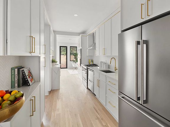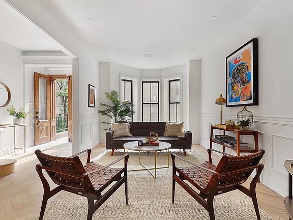 Welcome to 1783 Union Street! Originally constructed in 1901 this six-bedroom, four-and-a-half bathroom two-family townhouse combines an early 1900s aesthetic with 21st-century design to pay homage to the home's original roots while offering the technology of the modern world. Upon entering the upper duplex, you notice the juxtaposition of original and new where the generous foyer is adorned with newly tiled floors, wainscotting, and an original entry door. Open the door into the parlor floor and you are greeted by a unique layout offering a front formal living room, dining area, and den/second living space towards the back. The floors are finished in a herringbone-patterned oak and picture frame wainscotting runs along the walls - an elegant design, implemented ingeniously, in this modern renovation. Both the den and living room have bay windows that allow for the radiance of light to disseminate throughout the home. The kitchen is finished with custom cabinetry and quartz countertops and is equipped with a full suite of appliances; including, Verona six-burner range; Fisher Paykal double dishwasher; Frigidaire oven, and convection and Blomberg french door refrigerator. There is also a breakfast nook or office space adjacent to the kitchen as you head out to the deck and private yard. As you walk up to the second floor a large skylight allows daylight to permeate the stairwell. The two queen size bedrooms located in the front of the house both have ample closet space and large windows - including a bay window. The second bathroom is outfitted with a soaking tub and finished with subway tiled walls and Carrera marble hexagon floors. The middle bedroom has a large skylight and can easily work as either an additional bedroom or transformed into the perfect space for your home office. The grand primary bedroom, situated on the full width of the house and facing the serene backyard, has ample space for a king-sized bed as well as a sitting area. The bedroom boasts a large walk-in closet and is adorned with beautiful bay windows. The complementary ensuite primary bathroom has a double vanity and a large glass door shower. Through a separate entrance under the stoop, you enter the garden floor. This unit has two bedrooms, and one bathroom, a home office, a large living room, and a full kitchen; perfect as an income-producing bonus or an in-law suite. Conveniently situated north of Easter Parkway, this location offers a diverse selection of bustling establishments such as Daughter, Bakerie, Holesome Bagel, Boeuf and Bun, and Basil Pizza and Wine bar to name a few. For grocery, there is Farmer's Market on Eastern Parkway and Food Universe Marketplace on Schenectady. Lincoln Terrace Park and the Brooklyn Botanic Garden as well as the Brooklyn Museum are all in close proximity. The convenience of this home is further established through all the nearby subway and bus options, the Utica (2,3,4,5), and the B46 at Utica and Eastern Parkway. This newly renovated two-family townhouse that combines an elegant design with modern finishes located in the heart of Crown Heights is not to be missed.