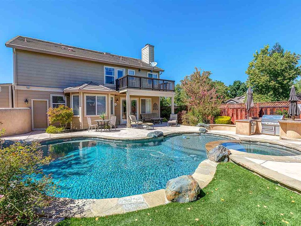 Fabulous beautiful home located in very desired "Maralisa Estates". Spectacular remodeled custom huge kitchen with granite island and plenty of top of the line custom cabinetry and counter prepping space. Ideal for the chef's in the family! Vaulted ceilings, Also outdoor kitchen, outdoor fridge, warming drawer & outside water plumbed sink in the grill area with plenty of sitting areas for family fun & entertaining. Your backyard Oasis awaits you complete with an incredible newer pool w/built in umbrella pool option, & sparkling waterfall, granite bar. RV side yard access, ideal for extra space. Master Suite features a balcony for morning coffee & a large walk in closet. There are four bedrooms (4th bedroom is a bonus room with no closet. Also there is an upstairs LOFT that can be converted to a 4th or 5th bedroom. Walk to Altamont Creek Elementary School/Park. Located within minutes to downtown Livermore restaurants/shopping/fabulous Livermore Wineries! No need to preview!