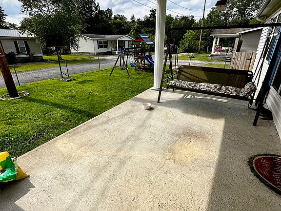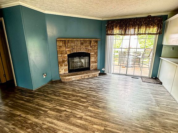 Sweet Doublewide home on a dead end street with a fenced front yard and so close to all things convenient in Boyd County is ready for a new owner! The home has 3BR, one being a owners suite, 2BA, and a large living room with a cozy fireplace. The kitchen has SS appliances and ample cabinet/countertop space. The kitchen opens up into the dining room which flows right into the living, great for family gatherings. The poured concrete porch is so inviting and can accommodate a large swing, all the flower planters and extra chairs for a fantastic outside living space. At the rear of the home you find a nice spacious deck, a pavers patio with fire pit and an above ground pool for summertime fun and entertaining! All you need now is the Uhaul!