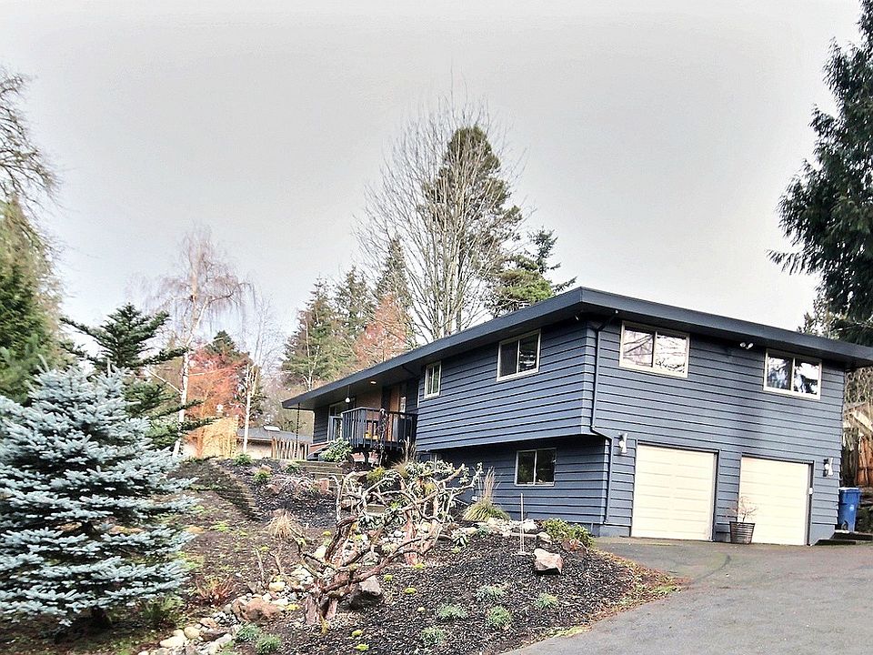 This mid-century home offers one-level living with an open floor plan & lots of light. Nestled atop a terraced lot, along a private drive, this property sits away from the street & offers lots of privacy. Home has had many updates including: new exterior & interior paint, new sliders, new doors, new back deck, newer windows, newer 40 yr roof, newer high efficiency furnace, updated landscaping and much more! Two car garage with storage & plenty of additional parking. See this home today!