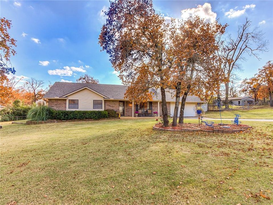 Just over 1 acre in Choctaw-NP Schools. Features include 3 bedrooms, 2 bathrooms, 1,625 sq. ft., large living room with fireplace, built-ins, vaulted ceilings, wood beam accents, and tons of natural light, eat-in kitchen with breakfast bar, lots of countertop space, and good size dining room, lots of storage, great flow, spacious bedrooms, 2 full bathrooms, and tons more. This home also has an attic elevator to make it easy to lift your things to store in the attic, a new roof that was installed in October 2020, Florida room was added in 2012 buy Champion, large out door entertainment area with large deck, pergola, and fireplace, storage building, storm shelter, and tons more. Homes like this do not last long. Call today for a private showing.