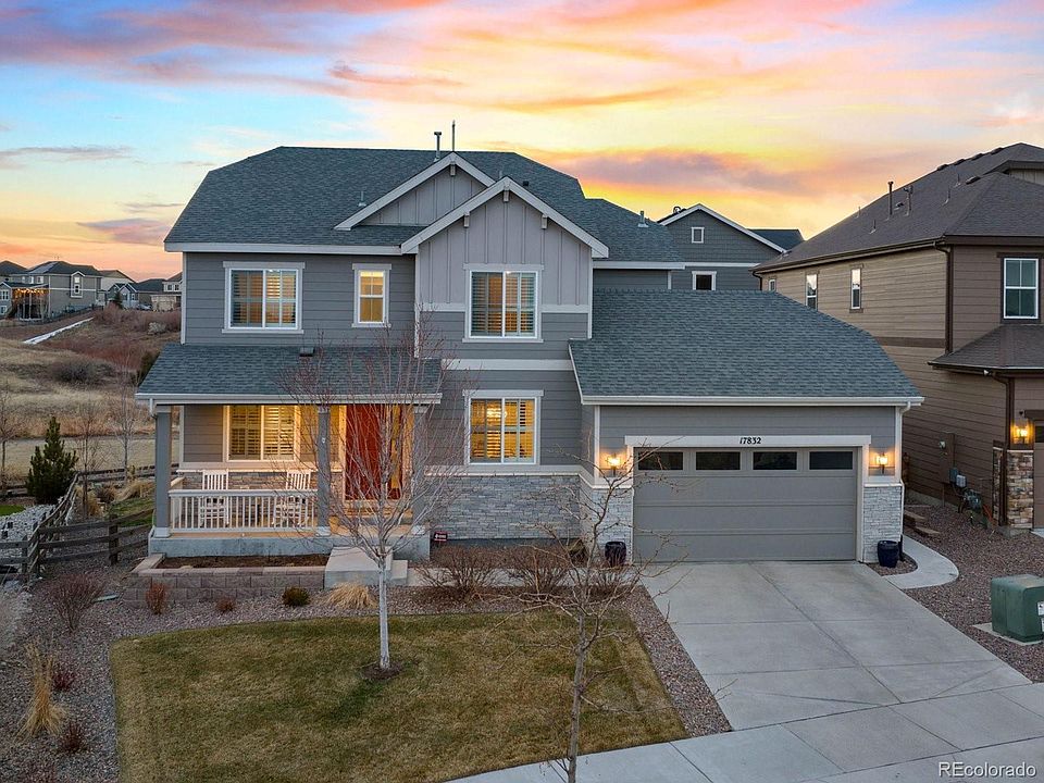 Modern elegance envelops the entirety of this 4-bedroom, 4-bath masterpiece, nestled in the highly-desirable Parker community. Upon entering, a sophisticated foyer leads to a formal dining area with architectural detailing, wood encased trim, and modern, center-piece chandelier. To the left, you’ll find a secluded office with French doors, perfect for a work from home space, play room, or potential main level bedroom. The layout effortlessly transitions into an expansive open concept area inviting entertainment and relaxation in the kitchen, living room, and stunning sunroom. The spacious living room features a statement wall with new built-ins & cozy fireplace, and a wall of windows shows off the open space behind. Be inspired by the stunning gourmet kitchen featuring a grand island with chic pendant lighting, craftsman white cabinetry, SS appliances, range hood w/ 5-piece gas cook-top, granite countertops, & large pantry. The captivating sunroom is designed for dining or lounging and opens to a large deck and spacious backyard. Ascend upstairs and discover a lavish primary owner's suite with a generous walk-in closet and a luxurious 5-piece bath boasting a soaking tub, dual sink vanity, and walk-in shower. A guest suite, two more additional good-sized bedrooms, two baths, & laundry room complete the upper level. The expansive garden-level basement offers endless possibilities for customization. The professionally landscaped back yard with newly planted trees backs to amazing open space, community park, & Cherry Creek trail w/ access to over 40 acres of open space. It’s the perfect living situation for enjoying all that the CO outdoors have to offer. Accompanied with a finished three-car, tandem garage and entry mudroom for storage, this home is in walking distance to American Academy Charter School and near the charming Main Street in Parker, easy access to I-25, C470, Lone Tree, DTC & the airport. Be ready to eleveate your living in this stunning, turn-key home.