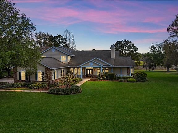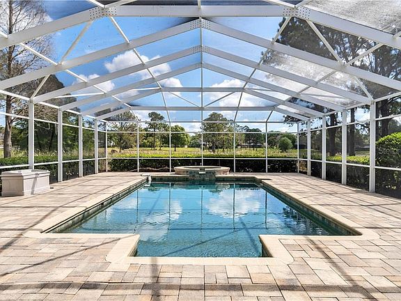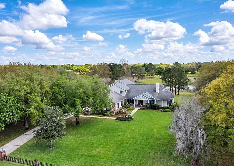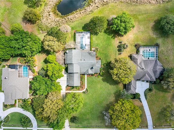One or more photo(s) has been virtually staged. Custom Built Estate Style Waterfront Pool home located in Lakes of Keystone Subdivision in Odessa. House is situated on a spacious 1.5 acre (mol) lot backing up to a small fishing lake called Lake Key. This home features 2 stories, 4 Bedrooms, 4 Bathrooms, 4270 square feet of living area, built in 1994. The home has soaring ceilings in the both living areas. This home features formal living room and dinning room and study with double door entry fireplace and built in shelving, 5 inch baseboards and beautiful hardwood floors. The large master suit is on the first floor with double door entry large walk in closet with custom shelving, view of the pool area. The master bath has a garden tub, double sinks, separate walk-in shower and double shower heads. This bathroom as well as the other 2 downstairs bathrooms were remodeled in 2011. The kitchen and family room are combined and features gas fireplace, tile floors, sliders to pool, soaring ceiling, granite counter tops, built in refrigerator, reverse osmosis, gas range, island, breakfast bar and dinette area. The upstairs features Jack and Jill bath with 2 bedrooms on each end, bonus area and den. Enjoy the fully enclosed lanai and pool area-brick pavers, pebble tech and built in spa, Heated Pool (heat pump) refinished in 2013. Other Features - New septic tank is scheduled to be in stalled soon, Outdoor kitchen, speakers in every room, pool table included, no CDD, Lake Keystone can be viewed from the front of the house.