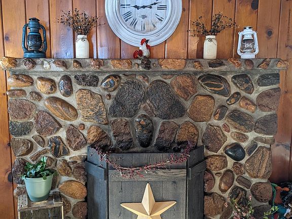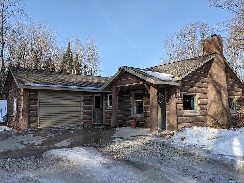 Home for sale in Atlanta MI on four acres with a shop, shed and horse barn. Perma log no maintenance exterior. The interior is beautiful tongue and groove and the kitchen and bath have been updated with gorgeous slow close grey cabinets, tile back splash and new counter tops. Lots of cupboards and kitchen space. The tiled bath has also been updated with a walk in tiled shower. The custom stone fireplace is a functional natural gas fireplace. The horse barn has three stalls and a tack room with cement floor. (pictures coming soon) There is a shop and another building that has lots of possibilities. All this on a county maintained road. Seller will be allowing showings through the weekend and in case of multiple offers will be making a decision on Monday 3/15/21
