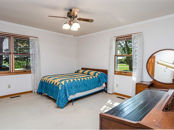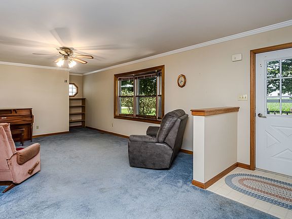 Rural country home on nearly 3/4 of an acre with cornfield views in the front and back. Custom built home and loved by one owner, this home holds many good memories. Soothing views from the heated sunroom with lots of natural lighting, vaulted ceiling, new flooring and gas heater. Large eat-in kitchen with appliances included. Living room features crown moulding, bow window and built-in shelving. Master bedroom has crown moulding, a large closet with built in shelves. Second bedroom, full bath with linen closet and half bath/laundry room combo complete the main level. Partially finished english walkout basement is ready for your finishes or enjoy as it is. Scenic piece of the country ready for its new owners.