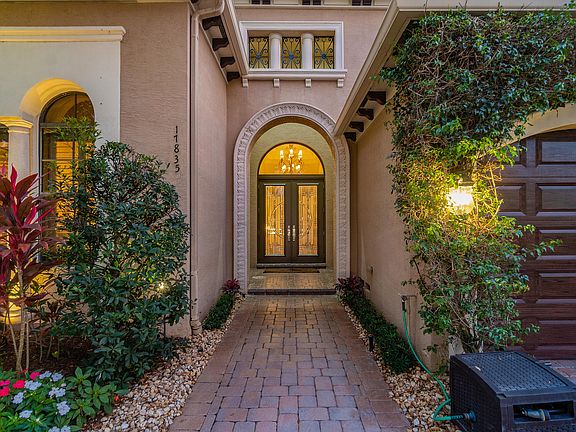 Rarefied elegance in this beautiful lakefront Barcelona model on an expanded lot. The builders upgrades are abundant in this single-story, 3 bed, plus study or convertible 4th bedroom, 3 full & 2 half bath home. Featuring Saturnia marble floors w/ intricate inlays in the foyer, wood floors in the study, custom millwork, & an incredible alabaster gourmet kitchen w/ professional-grade appliances. The Primary suite is located in a private wing and features 2 outfitted closets & a luxurious primary bath. Remaining bedrooms feature en-suite baths and custom closets. The highlight is the expanded side yard w/ tremendous lake views from the recently refinished pool & patio space. With a full house generator, full hurricane protection, screened patio, & a 2 car garage. Sophisticated and pristine! There's no place like The Oaks!!