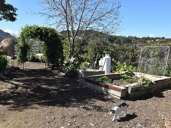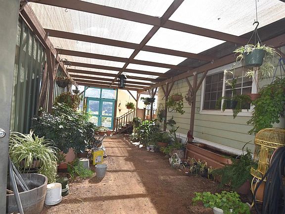 Perfect home for gardeners or car enthusiast. 30x40 Metal building with tons of opportunities, plus multiple out buildings/sheds/potting house & green houses. Gardens galore, exotic fruit trees, flower beds, and more. Home is a three bedroom, two bath mobile home. It has recently been updated with some new windows, stove, double oven, Owned SOLAR, metal roof, mini splits for heat/ac. Property has tons of potential. RV parking, room to add ADU. Redwood deck off the house plus a cool breezeway patio between the house and butler building. Home is a mobile home without a 433A, so financing is difficult.