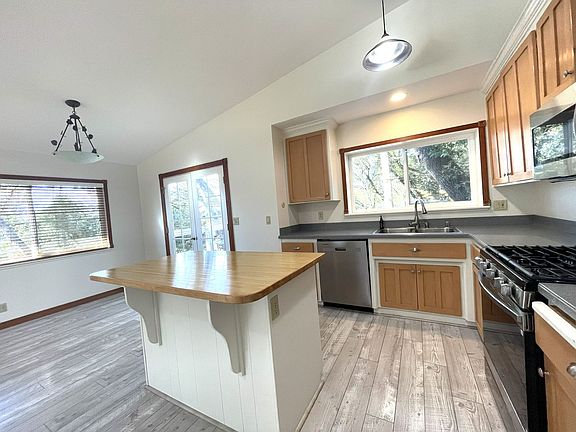 Center island eating barGuest bedroomEngineered flooringNew upgraded kitchen appliancesPantry closetVaulted ceilingsLarge great room