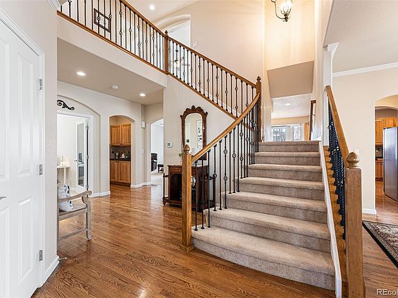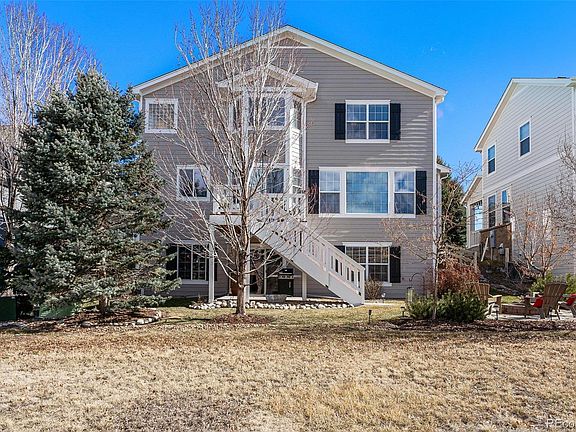 Incredible NEW PRICE!!! Backing to open-space, this impeccably maintained 2-story home is filled with lots of amenities. From the quaint front porch to the fully finished walk-out basement, this 5 bedroom home with over 4300 sq ft of finished living area creates many unique entertainment areas. The gourmet kitchen is equipped with stainless steel appliances, a double oven, walk-in pantry, separate beverage area, an expansive center island and work/craft area. Opening up to a family room with a cozy gas fireplace, the kitchen becomes a center-piece of the home. The main level also features a spacious home office, and an expansive living and dining area. Walking up the double entry staircase, the primary suite boasts two separate walk-in closets, and a quiet area ideal for relaxation. The ensuite bathroom is a luxurious oasis with dual vanities, a corner soaking tub, and a shower. The second level also contains the laundry room, two bedrooms with jack-n-jill bath, and another bedroom with ensuite full bathroom. The three-car garage provides protection for vehicles and toys, with built-in shelving for organization. The custom finished walk-out basement offers another bedroom, full bath, wet bar, TV area, and storage. Indulge in peaceful outdoor living on the deck or relax with the cozy fire pit. The desirable neighborhood of Anthology offers access to a clubhouse, outdoor pool, brand new playground, neighborhood elementary school, and walking trails. Conveniently located to downtown Parker where you can enjoy locally owned businesses, restaurants as well as arts & culture. This home is only 20 minutes from the Denver Tech Center and 45 minutes from DIA. Explore the virtual tour!