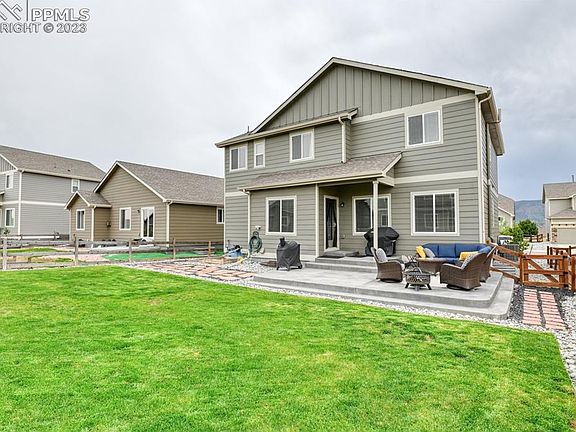 This 2-story home is situated in the coveted Village Center at Woodmoor subdivision in Monument w/ 2 parks & trails w/in walking distance*Just minutes from US Air Force Academy & conveniently located off I-25 & Hwy 105 this lovely home provides easy access to restaurants, shopping, hiking & schools* The main & upper levels feature newer carpet w/ upgraded temper padding for exceptional comfort & spill-proofing*Eat-in gourmet kitchen features a solid stone island w/ breakfast bar complete w/ deep basin sink & upgraded handheld faucet, pantry, granite countertops & wood flooring*stainless steel appliance suite, including a gas range, perfects this distinctive kitchen*You’ll love entertaining in the spacious family room, & the formal dining room which can also be used as an office*There’s also a powder room on the main level*Upstairs you’ll find 4 bedrooms plus the laundry room*spacious primary bedroom w/ breathtaking mtn views & adjoining ensuite 5-piece bath & walk-in closet*upper-level features 3 additional bedrooms, along w/ a spacious full bath*unfinished basement has rough-in for a bathroom & additional electrical outlets here & also in the garage*From the easy & welcoming flow of the main level that welcomes you & your guests, to the walk-out expansive & upgraded concrete patio, to the newer flooring throughout, to the gourmet kitchen & baths & beautiful, updated light fixtures, you’ll find the design, features, & amenities that facilitate your life in comfort & the nearby shopping & recreational conveniences beckons you from just minutes away*High quality touches everywhere. Central air, radon mitigation system w/ custom painted exterior pipes, dual wing gates on both sides of the gorgeous yard, & custom wainscoting in the office/formal dining room*As you might imagine, though, there are far too many features to mention in this limited space*You simply must see it to believe it*Once you’ve crossed the threshold, you’ll know your search is finished!