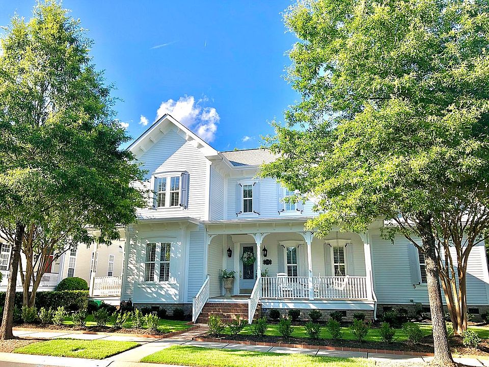 Southern charm abounds in this elegantly appointed home in South Charlotte- a classic low country style home with welcoming front and side porches! This sun-drenched home features an open floor plan, gleaming hardwood floors, crown molding, plantation shutters and wainscoting. Master suite is on the first floor. A three season screened porch wraps rear of home overlooks an english garden and a private, gated backyard nestled next to natural preserve. Three bedrooms each with their own en-suite bathroom and custom closet, a spacious family room and a bonus playroom complete the second floor. Finally, HOA maintains all yards!