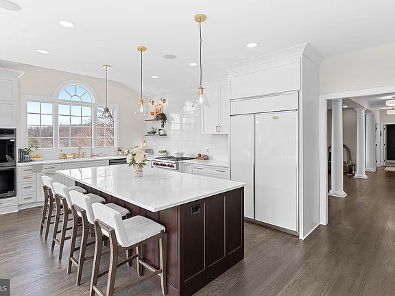Luxury and comfort define this renovated estate home nestled within the prestigious and private community of Shenstone Farm with breathtaking views of the rolling countryside on 3.22 acres. This 5 BR / 8 BA home offers 8,200 Sq Ft of luxury living space. Extensively updated with $300,000 in modern upgrades and luxury finishes. Step into the two-story foyer, where a stunning staircase sets the tone for the elegance that awaits. Refinished hardwood floors on the main level and newer carpeting upstairs provide a fresh, sophisticated backdrop for any style. The main level includes a large great room, bathed in natural light with an expansive wall of windows and a raised stone hearth fireplace showcasing breathtaking year-round views. Just off the great room, a private corner office with a bay window and built-in bookshelves offers the perfect work-from-home retreat. The light filled sunroom is an ideal space for music, reading, or quiet relaxation. At the heart of the home is the NEW Gourmet Kitchen, a true chef's dream masterfully designed with: rich, elegant solid wood cabinetry, quartz countertops & custom tile backsplash, all-new appliances, including double wall ovens, 36" WOLF GAS RANGE, Professional MONOGRAM 48" BUILT-IN refrigerator. The large island offers even more cabinet space (on both sides) and a place to gather. The new Butler's Pantry enhances both everyday living and effortless entertaining. Convenient access to the mudroom, laundry room, and side-porch entry. Step out on the new deck to enjoy your morning coffee. The upper level offers 5 spacious BRs each with their own private, updated BAs. The primary suite is a serene sanctuary, featuring new hardwood floors, a relaxing sitting room with fireplace, a newly renovated luxury bath with walk-in custom tile shower, soaking tub for ultimate relaxation and new designer vanities. Closets include custom built in closet system for organized storage. Expansive Walkout Lower Level includes a family room with raised brick hearth fireplace, new custom bar with counter seating, wine closet and wine fridge, room for game tables, a new home theater room with plush new carpeting, a full bath and a guest room/mother-in-law suite. French doors lead to the beautifully landscaped backyard, complete with a natural stone patio, built-in stainless gas grill, and charming carriage lights. Every surface of this home has been updated and refreshed. Additional updates include Fresh Interior Paint, new landscaping & power-washed windows, Roof (2022), New 75 gallon Water Heater (2025), new Firepit and gravel area, gutters cleaned (2025). Located just minutes from downtown Historic Leesburg, Ida Lee Rec Center, and Loudoun County Fairgrounds, this estate is near wineries, fine dining, shopping, and the outlets—offering the perfect blend of countryside elegance and modern convenience.