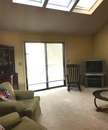 In Demand! One level end unit at Huntington Woods. Wrap around deck viewing nature. Great room has gas log mantle fireplace, vaulted ceiling and skylights. Large master bedroom suite with desk/computer or reading nook, walk out to deck as well. Large walk-in closet. Eat-in kitchen and formal dining room area in great room if needed. Front bedroom has walled bookshelves. Pool and walking area. Pull down, floored attic storage. HOA $185/month. Hurry!