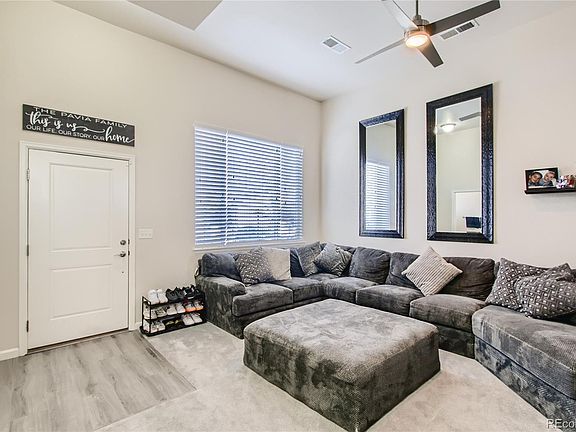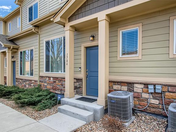 Pack your bags and move on in! You are welcomed into a light filled living area with vaulted ceilings and stunning grey tones throughout. The living area is a great place to gather and play games or watch your favorite show. There is even a 1/2 bath on this floor for your convenience, and when guest come over no need to go upstairs. The sellers added lots of upgrades when they built this home and even added a pantry. The gorgeous eat-in kitchen will bring out the chef in you and features a spacious granite island with tons of room for entertaining and trying out your favorite recipes, separate dining space is perfect for larger gatherings or a great play area as it is used for now. The nice cozy deck is a great place to have your morning coffee on those warm sunny days. The second floor offers three spacious bedrooms including a large primary bedroom with lots of natural light and an attached full bathroom. There is another full bathroom on this floor and even a laundry area so you don't have to lug laundry up and down stairs. Attached 2-car garage features a huge crawl space so there is no concern about storage. This popular Aspen Meadows community features a playground and dog park. This neighborhood is conveniently located close to shops, school, restaurants and I-25. SHOWINGS START FRIDAY APRIL 1ST at 12PM
