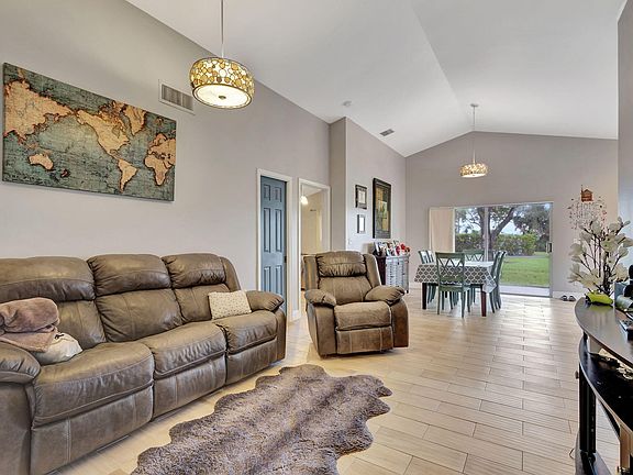 This beautiful 3-bedroom, 3-bathroom home features a desirable split layout and is situated in an A-RATED SCHOOL DISTRICT. Enjoy the benefits of a NEW 2023 A/C system, soaring vaulted ceilings, and UPGRADED FLOORING on an expansive corner lot. The welcoming entry leads to a living area with a full bath, which flows into a spacious dining area and kitchen equipped with beautiful countertops, a stylish glass-tiled backsplash, and a pantry. The master suite offers a luxurious en-suite bath with a dual-sink vanity and walk-in shower. The additional bedrooms come with generous closet space and share another full bath with a shower/tub combo. Host gatherings on the screened patio while the kids and pets play in the large yard. Plus, a playground and community pool are just a short walk away! Wellington's Edge is a sought-after community featuring amenities like a clubhouse with a pool, game room, fitness center, tennis, basketball courts, and multiple community pools, along with a scenic nature trail and preserve. All this is conveniently located in the heart of Wellington, just minutes from dining, shopping, and the renowned Wellington Equestrian Center!