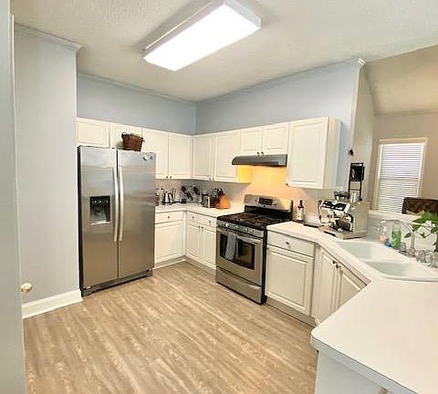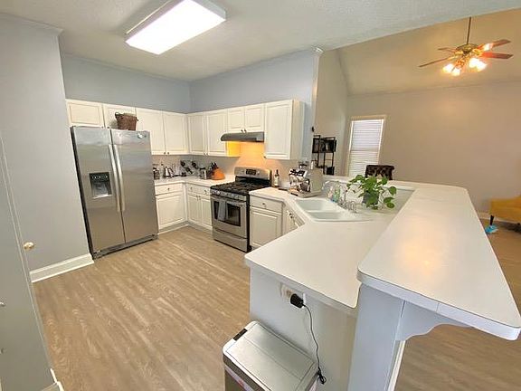 Beautiful, light & airy farmhouse-style home for rent in Kennesaw. 3BR/2BA, 2 car garage with nook. Very quiet neighborhood. Only 5 min. to Barrett Pkwy and easy access to I-75. New floors and paint, vaulted ceilings in formal LR, formal DR. Kitchen with peninsula and bar stool countertops overlooks breakfast nook and family room with fireplace. Master with 2 walk-in closets and separate vanities, shower and jacuzzi tub. Washer & Dryer included! High-fenced back yard with cement patio is very private. Long driveway gives front yard privacy. Surrounded by trees, this perfect, pristine escape is ready to be your home! Pet registration= $250. Pet rent=$25/month. Must complete a pre-screening questionnaire prior to application. Send request to see property.