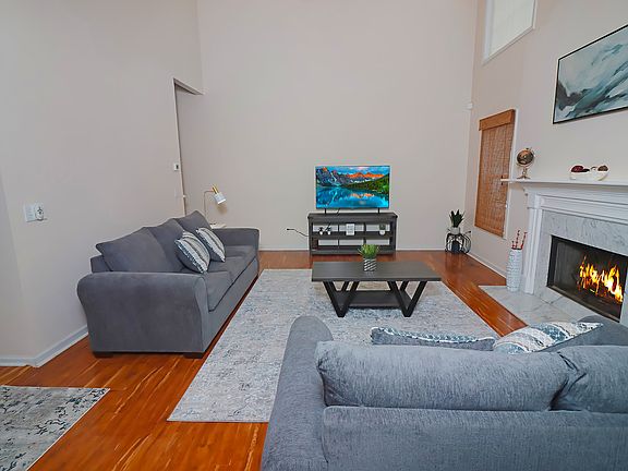 Spacious and charming 4-bedroom single family home, idea for short or mid-term stays. This peaceful area awaits and makes for a relaxing and serene experience. Upon entering the Foyer, you are immediately greeted by elegance of the interior, graced on each side with the formal Dining and the Living rooms. Continue straight and you're adorned with high cathedral ceilings that exude a sense of grandeur throughout the home. Relax in the cozy Family Room, complete with a delightful fireplace.