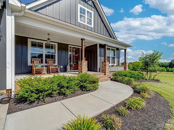 Introducing a stunning custom home, rich with upgrades, hosting 4 beds and 2.5 baths on a serene 12-acre flat lot. An electric gate, accessible by phone or keypad, welcomes you to this architecturally captivating property with a charming rocking chair front porch, surrounded by lush pastures. Step inside to a well-lit, magazine-worthy entry, showcasing the home's true beauty. The open floor plan, complemented by a perfect color palette, leads to a dream kitchen with a grand hand-picked granite island. The split-floorplan offers a tranquil primary suite with a private study, his and her closets, and an elegant en-suite featuring a frameless shower with tub. Outside, discover a spacious pole barn and detached workshop, both wired with electricity. Home is set up for handicap access (3ft doors, bathrooms w/ 36" on center horizontal studs for grab bars). Explore the video walk-thru and flyover to appreciate all this home has to offer. Don't miss out on this remarkable opportunity!