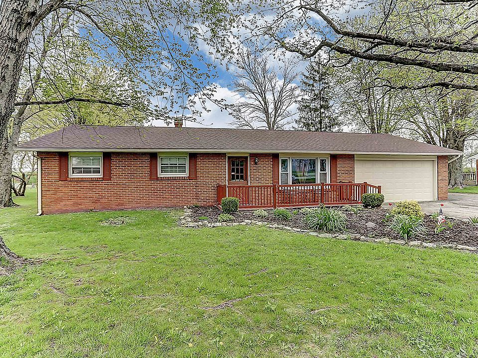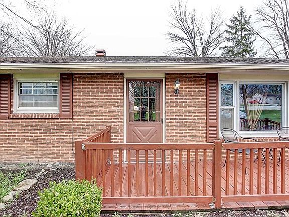 Very BEAUTIFUL well built 3 bedroom brick home in HIGHLY desired Clearcreek Twp. This home is situated on a gorgeous 1/2 acre of land with no rear neighbors. Enjoy country living while still being close to it all. New carpet just installed throughout entire home. Wooden beams in the kitchen and dining area give this home such amazing charm. Home boasts many upgrades including a new roof in 2014 and newer windows. Living area, master bedroom and hallway just repainted. Owners have added a gorgeous front deck. Enjoy evenings outside while watching from the comfort of the attached covered porch. A wood burning stove was added that radiates heat to most if not the entire house. Newer insulated garage door with new motor. Home is move in ready! You don't want to miss this gorgeous home!
