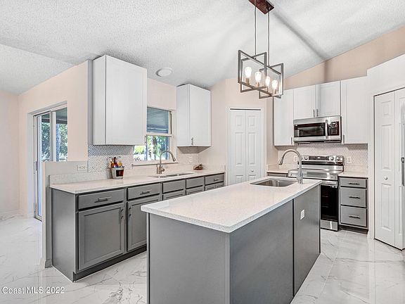 Beautiful, complete remodel! This open plan has been completely modernized with Quartz kitchen counter tops, 2 kitchen sinks, 2 kitchen pantries, new light fixtures and fans, appliances, flooring, freshly painted inside and out, brand new cabinets throughout! The owners suite boasts 2 separate walk in closets, walk in shower, separate soaker tub and private water closet and a high-tech lighted vanity mirror. This amazing corner lot backs up to utility easement and drainage canal creating extra privacy with spacious feel while enjoying the large screened and covered back porch. This home will not last long. Call for private showing before it is sold. New Well pump 2022, new water heater 2022. New roof 2017. New A/C 2014.
