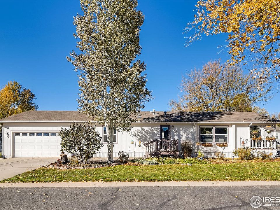 Beautiful corner lot in Sunset Park (age 55+) with a rare 2-car oversized garage! Enjoy low-maintenance perennial flowers outside. Inside, you'll find new flooring, fresh paint throughout, new light fixtures & ceiling fans, beautiful new tile around the fireplace & gorgeous new mosaic tile on the kitchen backsplash, as well as new kitchen counters & blt-in cabinetry in living room & laundry. Master bath completely updated within the last few years as well as the deck. Ready for you to move in!
