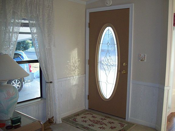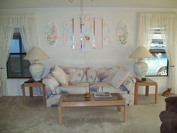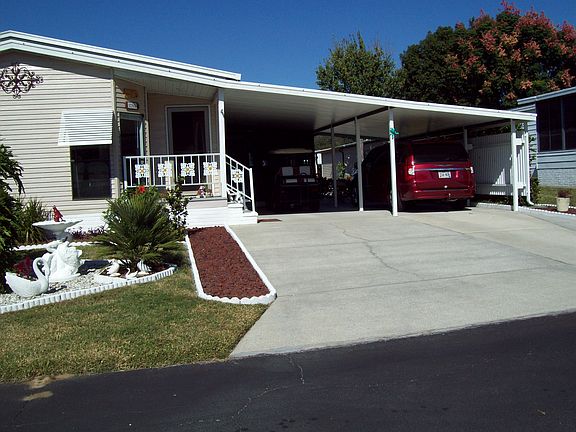 1990 Palm Harbor, Fully Furnished, Double Wide Moble Home, Double Driveway. Inside Laundry Room, Workshop and Large Screenroom W/insert windows. All newly updated, New ceramic floors in kitchen, baths, laundry room. Painted inside and out in last 2 years. Ceramic tile on front stoop. Has 50 year metal roof. Property owned community, very low HOA fee @ $50. per month. View beautiful 55 and over community at foxwoodlakeestates.com.