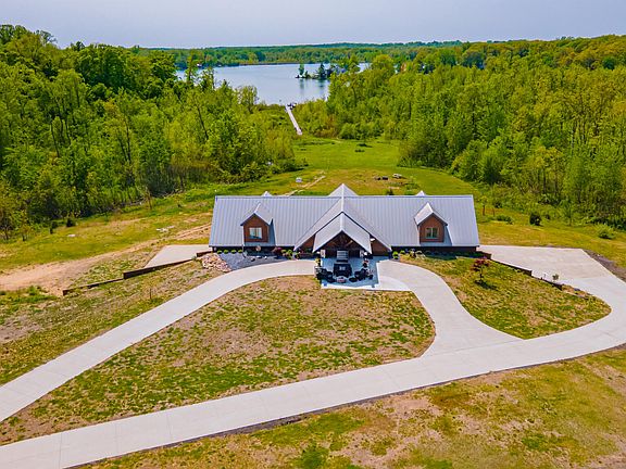 Guest house offers kitchenette, 3/4 bath & loft for sleeping. 40x60 pole barn has in floor heat, and a private workshop area in the back with a 1/2 bath. 22k generator powers all 3 buildings if needed. Underground utilities, 375' boardwalk to the waters' edge, and so much more! This is a must see