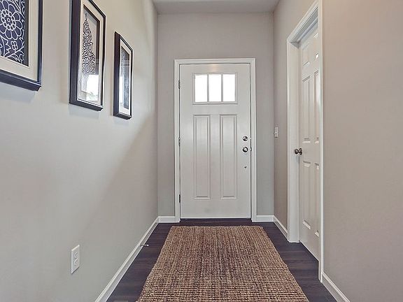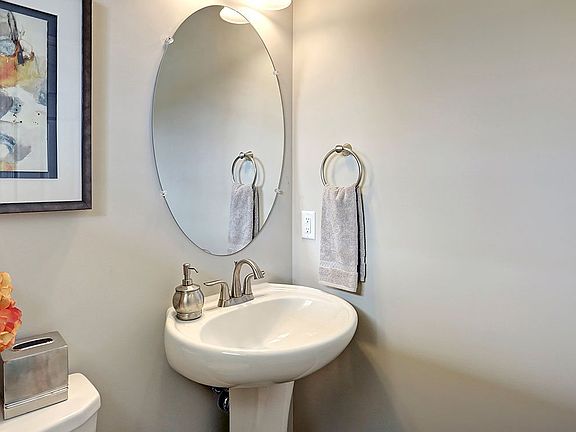 This end-of-row townhome includes a 2-car garage with entry featuring convenient built-in lockers.. Vinyl plank flooring in the foyer extends to the powder room, kitchen, dining area, and family room. The open kitchen features attractive cabinetry with crown molding, granite countertops with tile backsplash, and stainless steel appliances. Off of the kitchen is the spacious family room with cozy gas fireplace and access to patio. The first floor owner's suite with elegant tray ceiling features a private bathroom with large closet, cultured marble double bowl vanity, and 5' shower. On the second floor is an additional bedroom, full bathroom, and large recreation space with skylight.