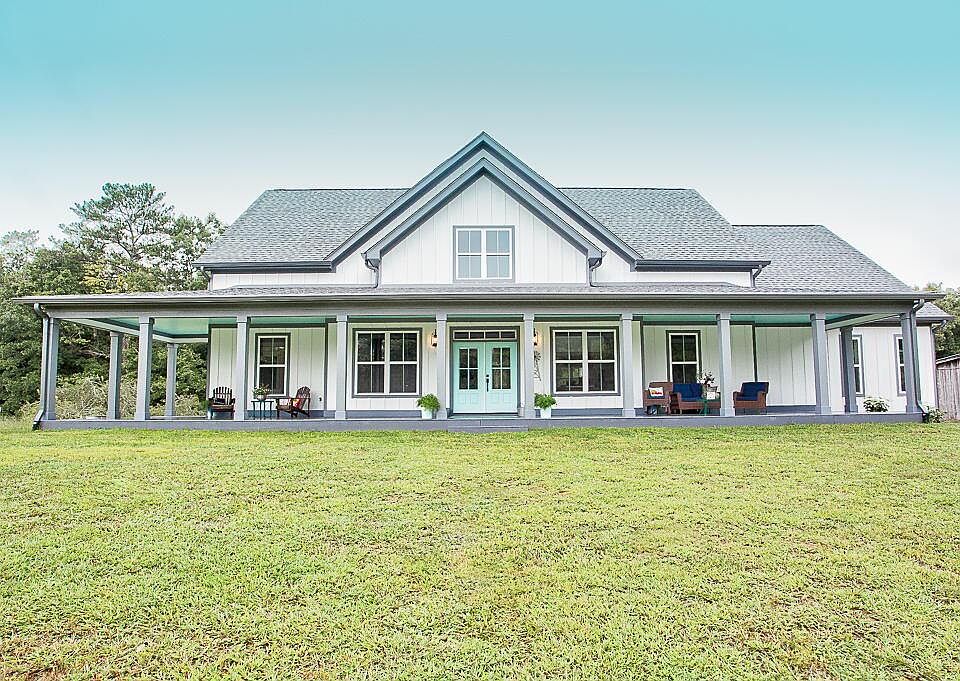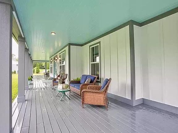 Rare opportunity to own 8+ acre estate with beautiful farmhouse style home with all living on one level. The home is less than one year old and was built by professional builder as their personal residence. The first thing you will notice is the sprawling 70 ft. covered front porch with stunning double front doors symmetrically centered. As you enter you are greeted by an open floor plan with a stunning floor to ceiling brick wood burning fireplace flanked by two out-swinging French Patio doors leading to the oversized screen in back porch. The Kitchen showcases a spacious chef's galley style kitchen featuring a 4'x14' premium walnut wood Island. The island has a prep sink and professional grade Viking slide in gas range. The kitchen also features 2 dishwashers, and a 20 ft. ceiling with 2 oversized skylights that fill the space with a glow of natural light. Adjacent to the kitchen is a massive walk-in pantry with direct access to the garage. On the opposite side of the kitchen is a built in his and hers office space surrounded by windows to look out at nature. A private entry leads to the master en-suite nestled in its own wing of the home. As you enter the large vaulted master bedroom you will notice the reading nook lit with lantern sconces. Double exterior doors lead to a private deck off the master bedroom. The luxurious master bath is fitted with a custom extended length and slanted back rest soaking tub, tile shower with two individually controlled shower heads, double sinks, seated vanity, and a private water closet. As you head to the other side of the home there is a second master suite with full private full bath and walk-in closet. Two more bedrooms are situated down a small hallway with a shared bathroom and the 2nd laundry space. The basement was built using superior walls and is partially finished with heating and air already installed. Outside there is a 50x50 barn built from wood milled on the property. Make an appointment to see it today!